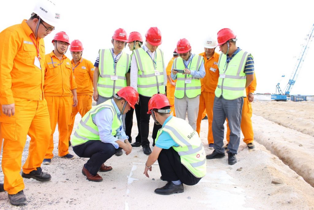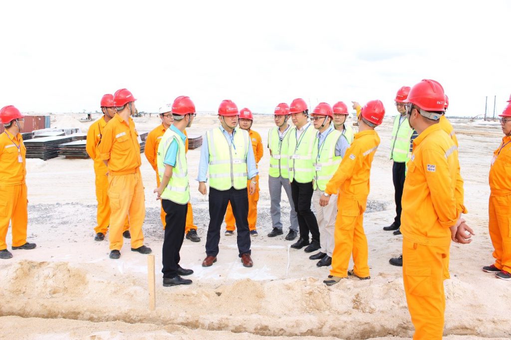 在Dangote煉油廠現(xiàn)場,印志松一行觀看了項(xiàng)目視頻介紹,聽取了項(xiàng)目經(jīng)理喬秋峰的工作匯報,對施工現(xiàn)場進(jìn)行了實(shí)地檢查。印志松為項(xiàng)目部所取得的成績點(diǎn)贊,他表示,在復(fù)雜的地質(zhì)條件、巨大的工程體量、前期各項(xiàng)條件不成熟的情況下,現(xiàn)場團(tuán)隊“特別能吃苦,特別能戰(zhàn)斗”,取得了現(xiàn)在的成績。項(xiàng)目部要再接再厲,團(tuán)結(jié)拼搏,甘于奉獻(xiàn),提升SINOMA品牌價值,服務(wù)好業(yè)主,為公司與DANGOTE集團(tuán)的長期合作貢獻(xiàn)力量。對后續(xù)工作,他提出三點(diǎn)要求:一是繼續(xù)秉承公司“以人為本”的安全理念,積極落實(shí)安全標(biāo)準(zhǔn)化,加強(qiáng)人員安全培訓(xùn)和各項(xiàng)安全措施的落實(shí),確保每位員工的安全;二是創(chuàng)新思路,做好質(zhì)量管理和進(jìn)度控制;三是加強(qiáng)與業(yè)主及各方的溝通,營造共同解決問題的氛圍。